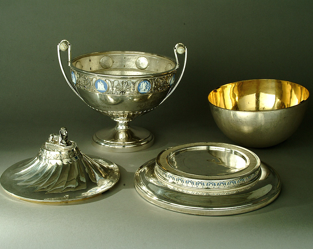 Prunkdeckelterrine aus Silber mit Wedgwood-Medaillons ca.1800